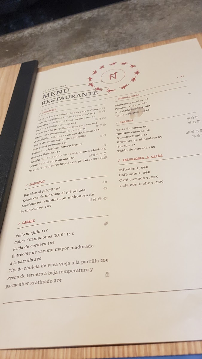 The menu at Los Caños Haro Restaurante offers a delightful variety of traditional Spanish dishes that capture the essence of La Rioja. Highlights include the Coca Torrada Sardina Marinada, a flavorful starter featuring marinated sardines on crisp bread, and the rich, homemade Tarta de Queso Casera, a perfect end to the meal. For mains, the Entrecote de Vacuno is a standout, offering tender cuts of beef grilled to perfection, while the Bacalao Al Pil Pil showcases delicate cod in a garlicky olive oil sauce that is both comforting and flavorful. Vegetarians will appreciate the simple yet tasty Pimientos Asados and fresh Tomate de la Huerta, which highlight the region’s seasonal produce. The Chipirones de Anzuelo provides a succulent, bite-sized treat with tender baby squid, and the Croquetes are crispy on the outside with a creamy, flavorful filling. To pair with your meal, there is a selection of excellent Tintos, the region's famous red wines, which complement the rich flavors of the dishes beautifully. Each offering on the menu is thoughtfully prepared, reflecting the restaurant's dedication to quality and tradition.